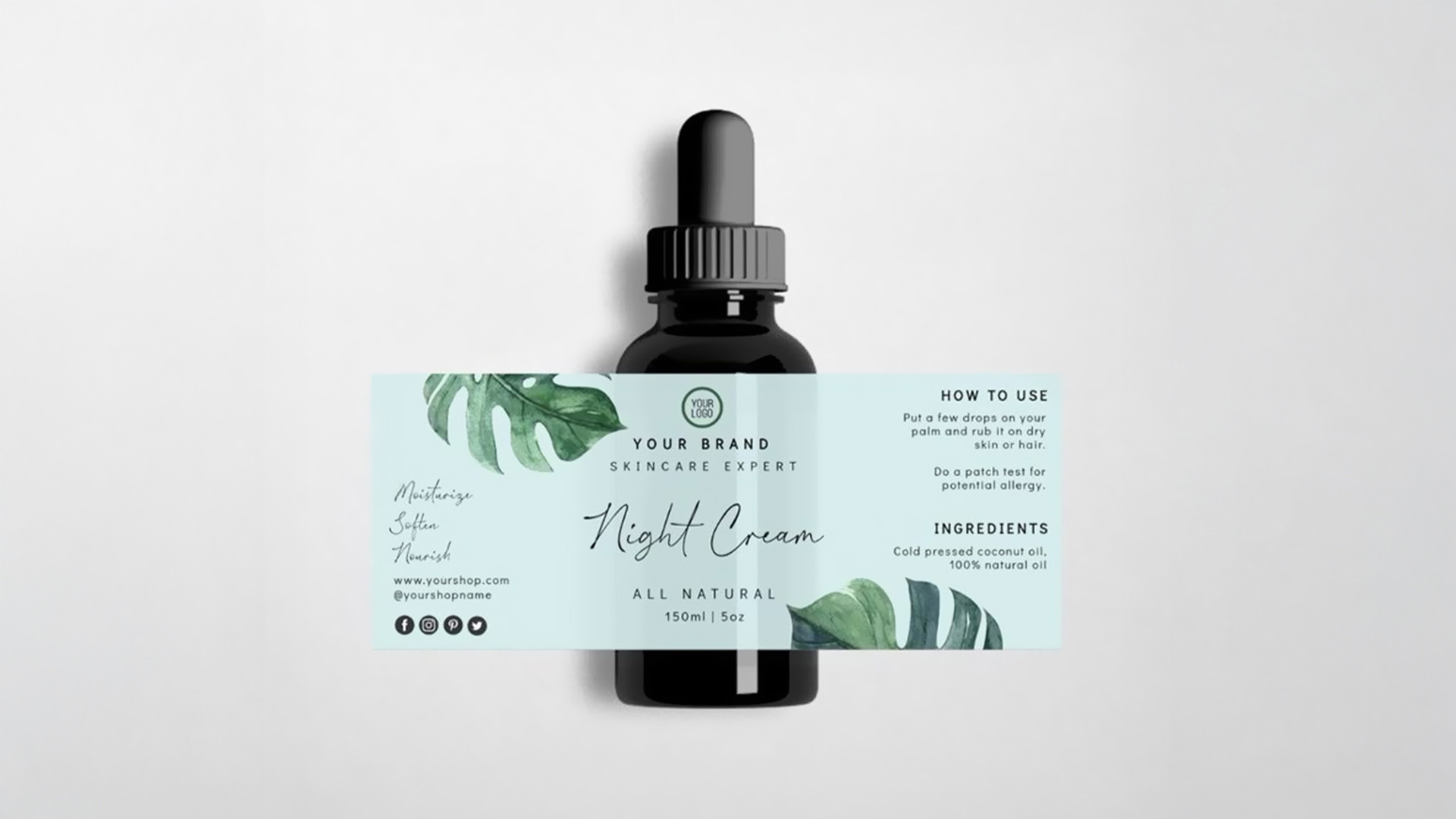 Sized to your actual packaging (bottles, jars, pouches, boxes)